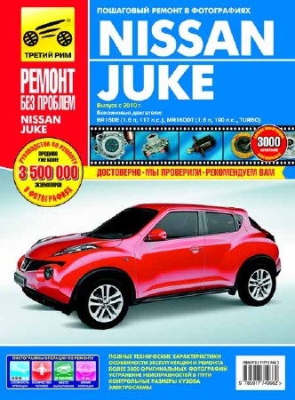 Руководство по эксплуатации, техническому обслуживанию и ремонту автомобилей Nissan Juke выпуска с 2010 года, с бензиновыми двигателями объема 1,6 л (117 л.с. - атмосферным и 190 л.с. - с турбонаддувом).