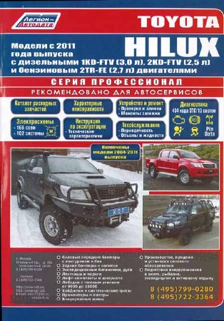 Toyota Hilux. Руководство по ремонту и техническому обслуживанию - Руководство по ремонту и техническому обслуживанию автомобиля TOYOTA HILUX c 2011 года выпуска, дизельными двигателями 1KD-FTV (3.0 Л), 2KD-FTV (2.5 Л) и бензиновым 2TR-FE (2.7 Л). Так же включены модели с 2004-2011 г.в.