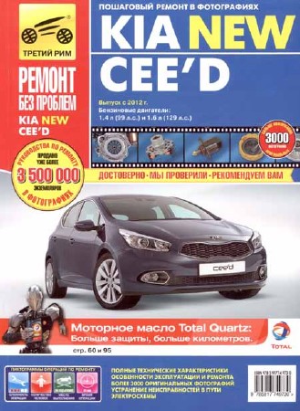 KIA New Ceed выпуска с 2012 г. Руководство по эксплуатации техническому обслуживанию и ремонту - Цветное, иллюстрированое руководство по ремонту и эксплуатации автомобилей Kia Cee'd выпуска с 2012 г. В издании подробно рассмотрено устройство автомобиля, даны рекомендации по эксплуатации и ремонту. Специальный раздел посвящен неисправностям в пути, способам их диагностики и устранения.