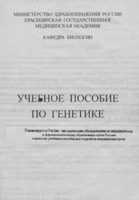 Название: Учебное пособие по генетике Автор: Карачева А.А., Максимова М.Н., Смирнова Л.С. и др. Издательство: Красноярск, КГМА Год: 1998 Страниц: 122 Формат: pdf Размер: 66 Мб Качество: хорошее Язык: русский Для сайта: TheBigLibrary.ru Учебное пособие по генетике для самостоятельной работы студентов медицинских ВУЗов.