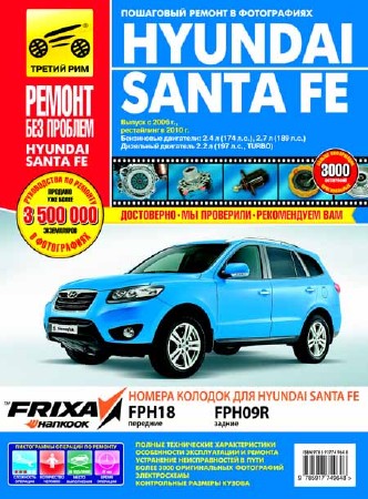 Hyundai Santa Fe c 2006 г. Руководство по эксплуатации, техническому обслуживанию и ремонту - Предлагаем вашему вниманию руководство по ремонту и эксплуатации автомобилей Hyundai Santa Fe выпуска с 2006 г. (рестайлинг в 2010 г.) с бензиновыми двигателями 2,4 л (174 л.с.), 2,7 л (189 л.с.) и дизельным двигателем 2,2 л (197 л.с, TURBO).